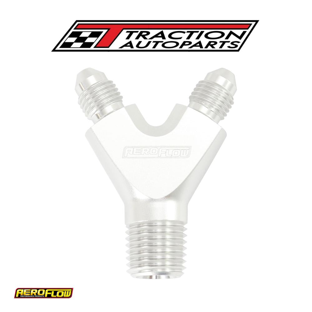 Aeroflow performance y block fittings are a good looking and effective way of splitting one line into two. These one-piece design blocks machined from 6061-t6 billet aluminium provide a smooth flow path for all types of fluids. The y-fittings are available in different AN sizes on one side and npt on the single inlet. Making thesefittings is ideal for nitrous lines or brake lines. Anodizedin either blue, black or silver finishes.