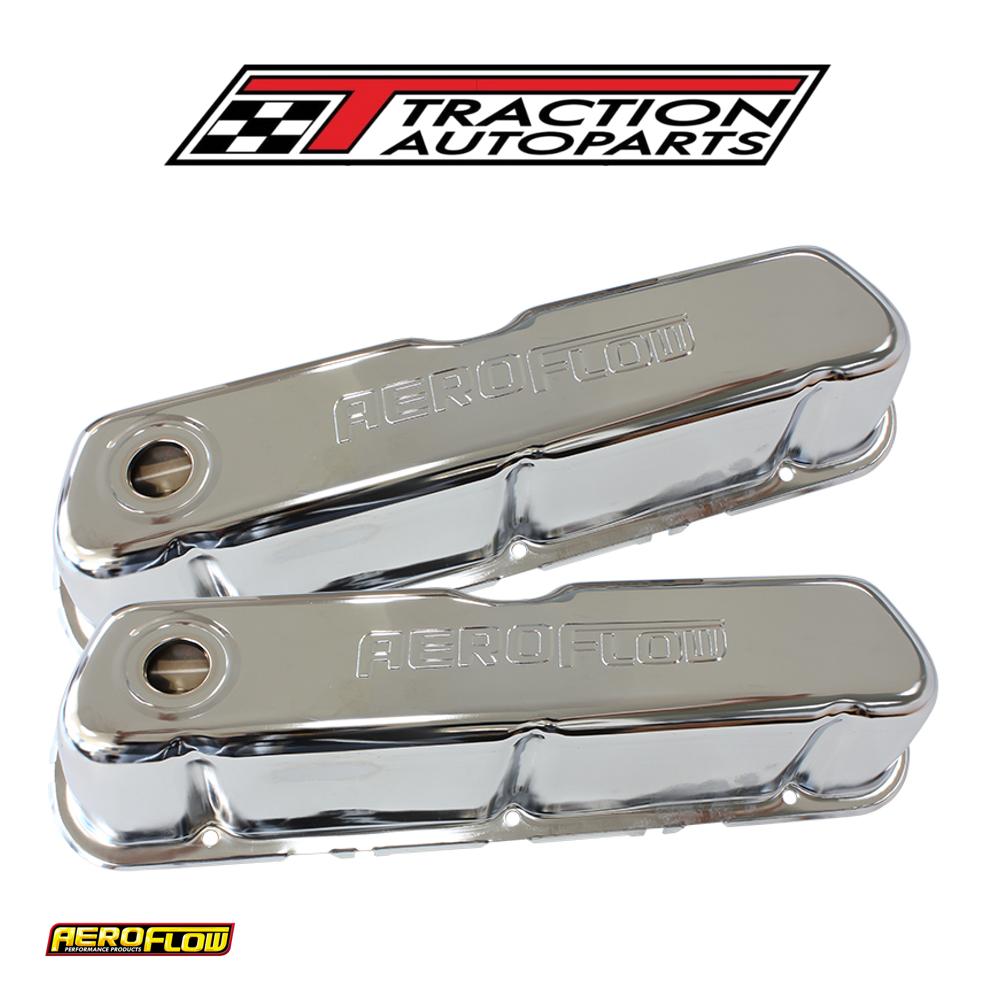Steel Valve Covers, Sbf Chrome With Aeroflow Logo