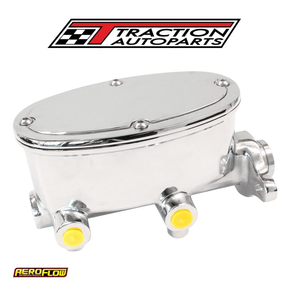 whether you're building a brake system from scratch, or upgrading from an older outdated worn system. The Aeroflow performance tandem brake master cylinders install easily, as most mount in the stock location. A tandem master cylinder is just like having two master cylinders combined inside a single housing, sharing a common cylinder bore. This allows the cylinder assembly to control two separate hydraulic circuits. This will be able have separate circuits for both front and rear brakes. We offer a variety of designs to provide compatibility with manual brakes as well as power-assisted applications. Each master cylinder has a gm universal mount spacing (3-3/8") to suit a variety of universal or bolt-on applications. Available in a smooth top in chrome or black finish and in 1" or 1-1/8" bore sizes and constructed from cast aluminium.