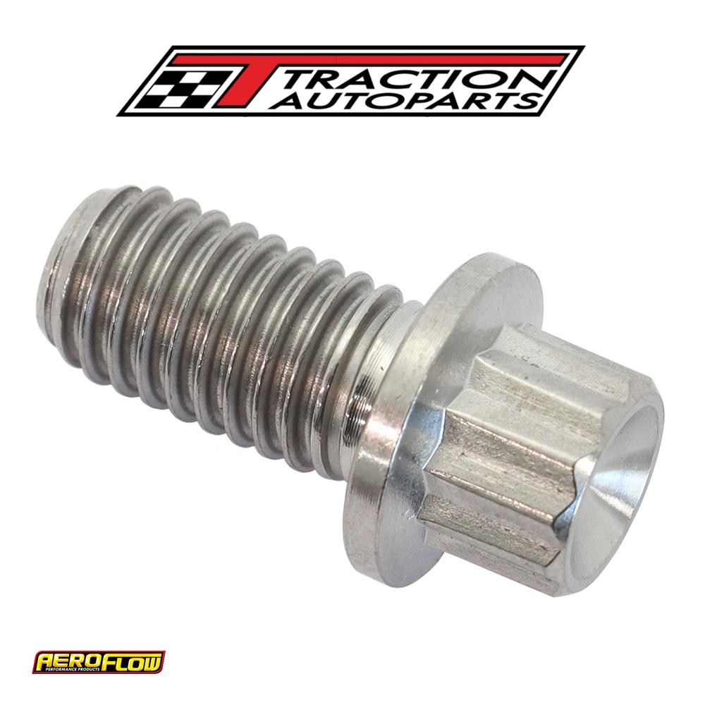 Aeroflow performance titanium 12 point head bolts, studs and nuts are machined from 6al-4v grade 5 titanium and the small head design is ideal when fitting into a recess or tight areas to give maximum clearance. These titanium bolts are the favored material for a fastener due to the attractive property of being a low-density metal, which has a higher tensile strength than many other materials, even in higher temperatures. Given this strength, titanium is remarkably light. When compared to steel in a strength-to-weight ratio, titanium is far superior, as it is as strong as steel but 45% lighter. In fact, titanium has the highest strength-to-weight ratio of all known metals. The pairing of their high strength to weight ratio, excellent resistance to stress corrosion cracking, high corrosion resistance and good fatigue strength make it the best choice to have in your race car. Each bolt is sold individually and available in a variety of threads and lengths to choose from.