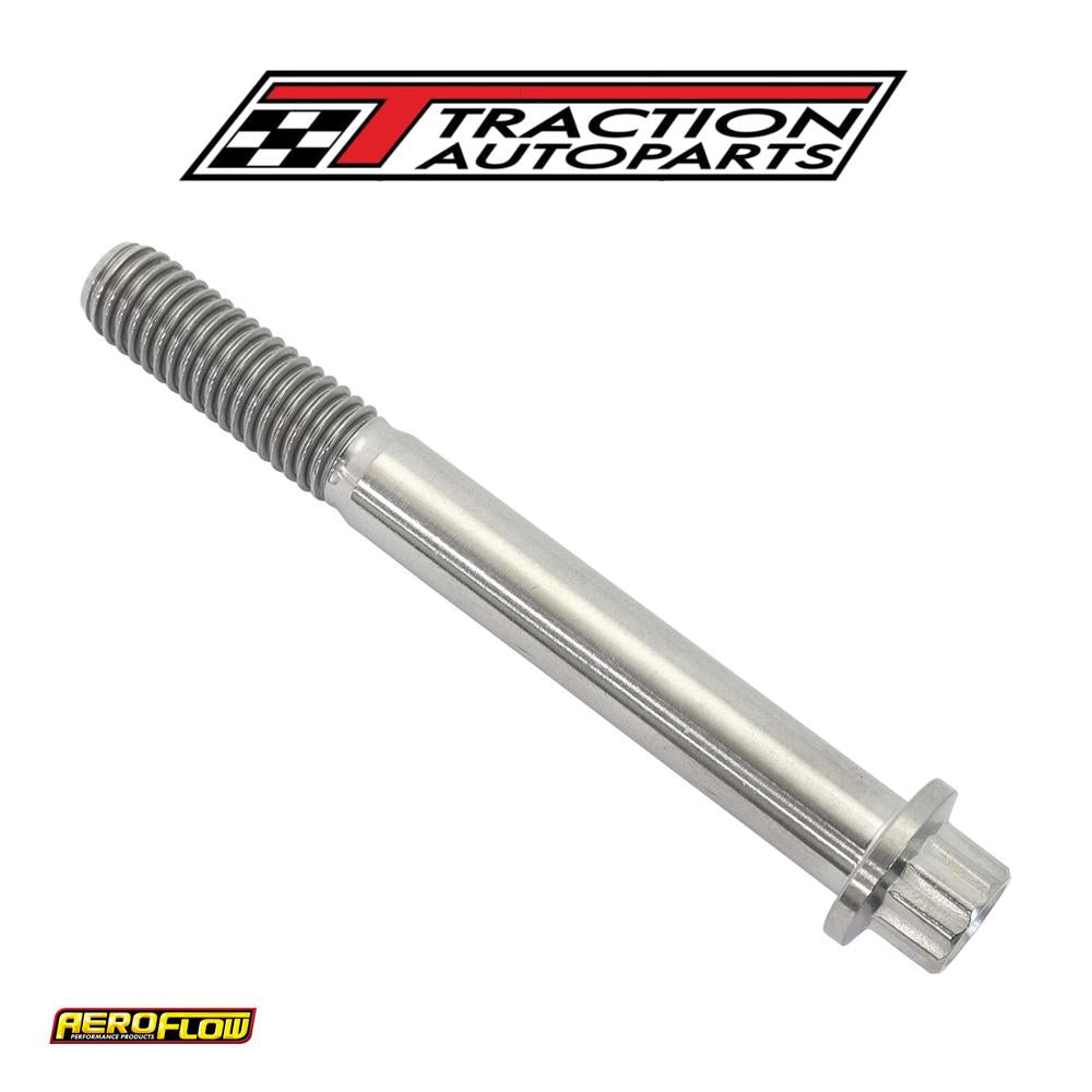 Aeroflow performance titanium 12 point head bolts, studs and nuts are machined from 6al-4v grade 5 titanium and the small head design is ideal when fitting into a recess or tight areas to give maximum clearance. These titanium bolts are the favored material for a fastener due to the attractive property of being a low-density metal, which has a higher tensile strength than many other materials, even in higher temperatures. Given this strength, titanium is remarkably light. When compared to steel in a strength-to-weight ratio, titanium is far superior, as it is as strong as steel but 45% lighter. In fact, titanium has the highest strength-to-weight ratio of all known metals. The pairing of their high strength to weight ratio, excellent resistance to stress corrosion cracking, high corrosion resistance and good fatigue strength make it the best choice to have in your race car. Each bolt is sold individually and available in a variety of threads and lengths to choose from.