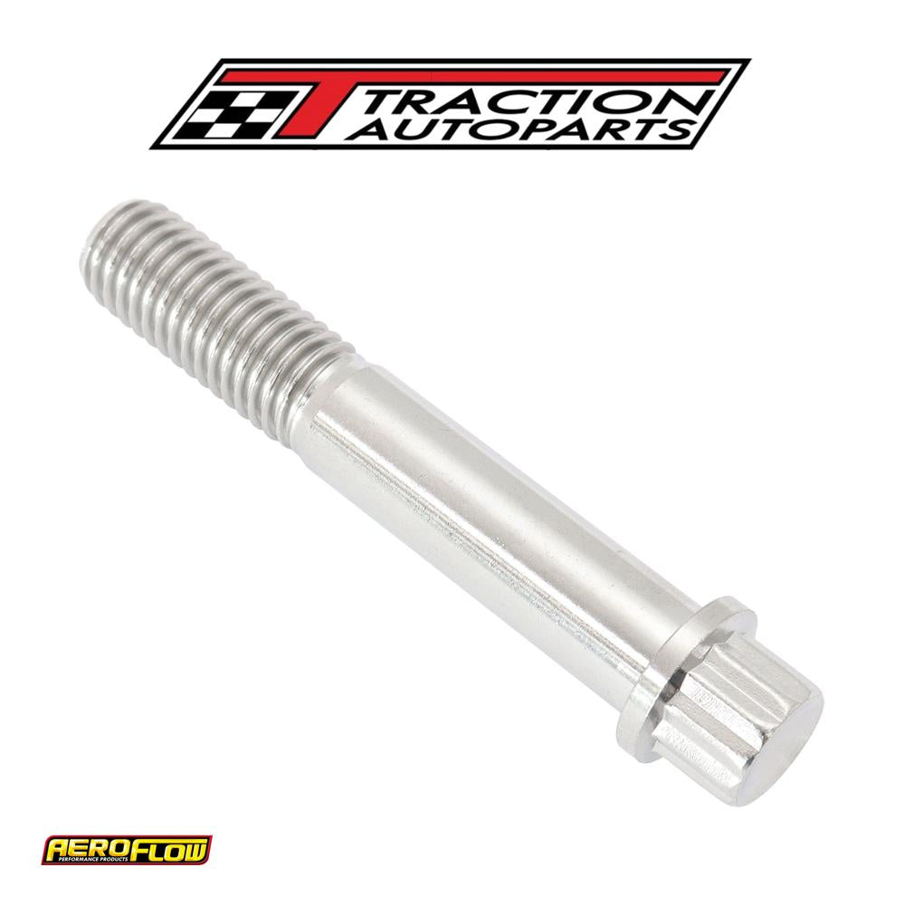 Aeroflow performance titanium 12 point head bolts, studs and nuts are machined from 6al-4v grade 5 titanium and the small head design is ideal when fitting into a recess or tight areas to give maximum clearance. These titanium bolts are the favored material for a fastener due to the attractive property of being a low-density metal, which has a higher tensile strength than many other materials, even in higher temperatures. Given this strength, titanium is remarkably light. When compared to steel in a strength-to-weight ratio, titanium is far superior, as it is as strong as steel but 45% lighter. In fact, titanium has the highest strength-to-weight ratio of all known metals. The pairing of their high strength to weight ratio, excellent resistance to stress corrosion cracking, high corrosion resistance and good fatigue strength make it the best choice to have in your race car. Each bolt is sold individually and available in a variety of threads and lengths to choose from.