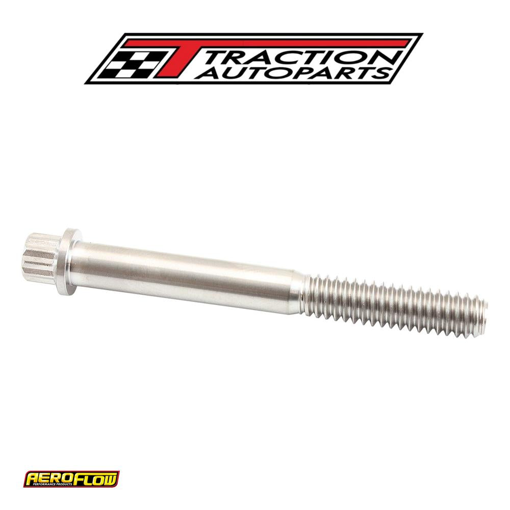 Aeroflow performance titanium 12 point head bolts, studs and nuts are machined from 6al-4v grade 5 titanium and the small head design is ideal when fitting into a recess or tight areas to give maximum clearance. These titanium bolts are the favored material for a fastener due to the attractive property of being a low-density metal, which has a higher tensile strength than many other materials, even in higher temperatures. Given this strength, titanium is remarkably light. When compared to steel in a strength-to-weight ratio, titanium is far superior, as it is as strong as steel but 45% lighter. In fact, titanium has the highest strength-to-weight ratio of all known metals. The pairing of their high strength to weight ratio, excellent resistance to stress corrosion cracking, high corrosion resistance and good fatigue strength make it the best choice to have in your race car. Each bolt is sold individually and available in a variety of threads and lengths to choose from.