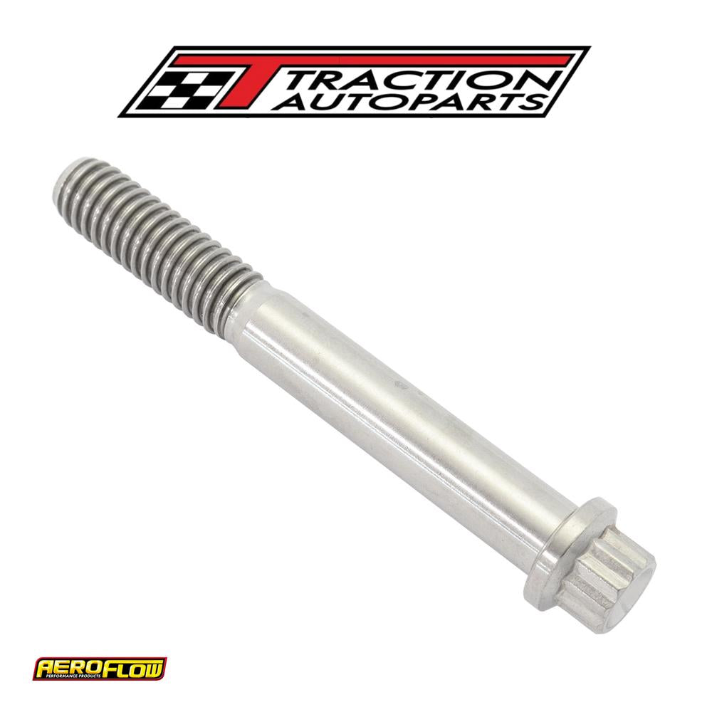 Aeroflow performance titanium 12 point head bolts, studs and nuts are machined from 6al-4v grade 5 titanium and the small head design is ideal when fitting into a recess or tight areas to give maximum clearance. These titanium bolts are the favored material for a fastener due to the attractive property of being a low-density metal, which has a higher tensile strength than many other materials, even in higher temperatures. Given this strength, titanium is remarkably light. When compared to steel in a strength-to-weight ratio, titanium is far superior, as it is as strong as steel but 45% lighter. In fact, titanium has the highest strength-to-weight ratio of all known metals. The pairing of their high strength to weight ratio, excellent resistance to stress corrosion cracking, high corrosion resistance and good fatigue strength make it the best choice to have in your race car. Each bolt is sold individually and available in a variety of threads and lengths to choose from.