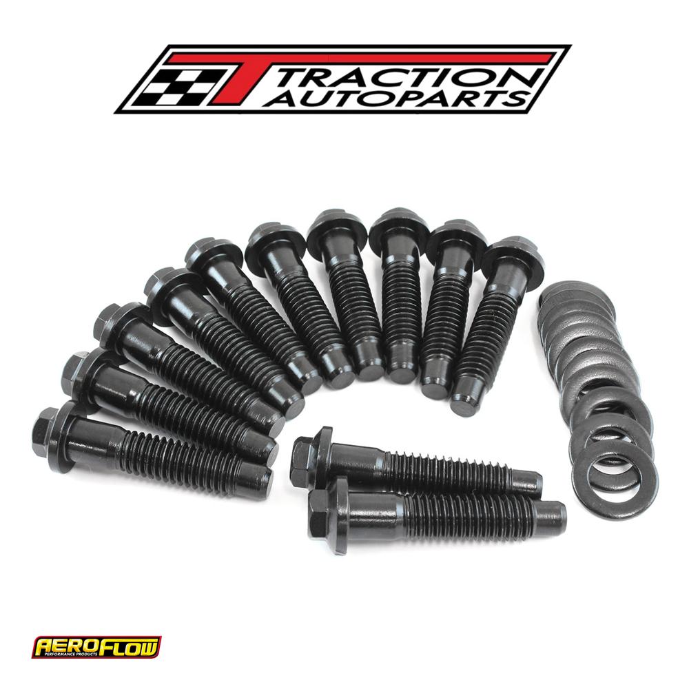 when installing a new intake manifold it is recommended to upgrade your intake bolts, some standard intake manifold bolts won't work depending on aftermarket intake manifolds. These intake bolts are madefrom chrome moly 8740 for strength. They are coated in ablack oxide finish for protection and long-lasting durability. Each bolt featuresa compact 12-point head which is ideal for use where space is minimal on most aftermarketintake manifolds compared to the factory bolts with a larger head. Each set includesthick flat washers for optimumclamping pressures to ensure asure seal.