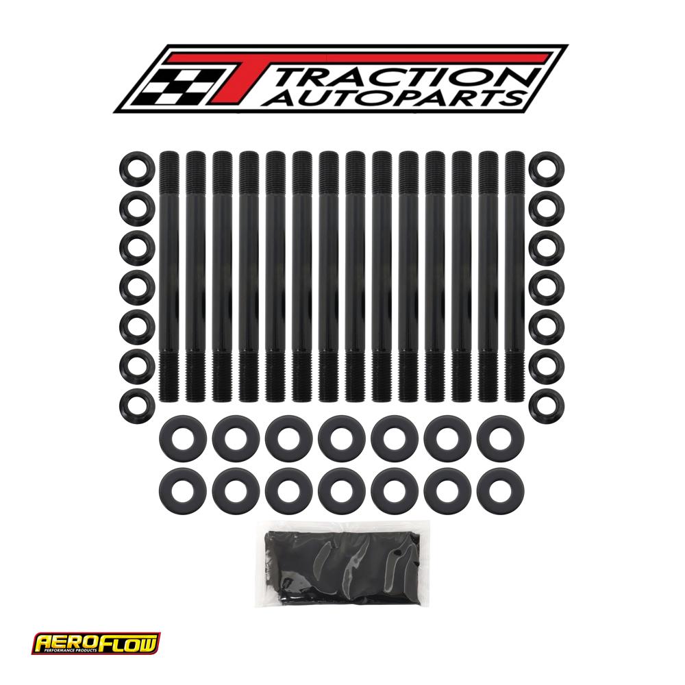 Aeroflow performance head studs greatly improve your cylinder head-to-block sealingcompatibilities. This is important in engines with highpower adders such as turbochargers, superchargers or nitrous. They can even be agreat addition to a mildly modified build as insurance against failure. All head studs provide a more accurate and consistent torque loading over traditional head bolts.