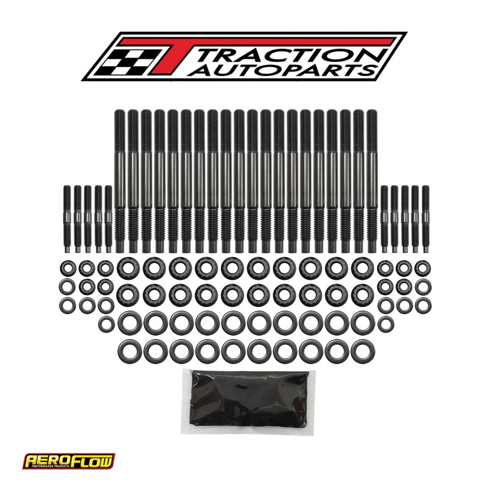 Aeroflow performance head studs greatly improve your cylinder head-to-block sealingcompatibilities. This is important in engines with highpower adders such as turbochargers, superchargers or nitrous. They can even be agreat addition to a mildly modified build as insurance against failure. All head studs provide a more accurate and consistent torque loading over traditional head bolts.