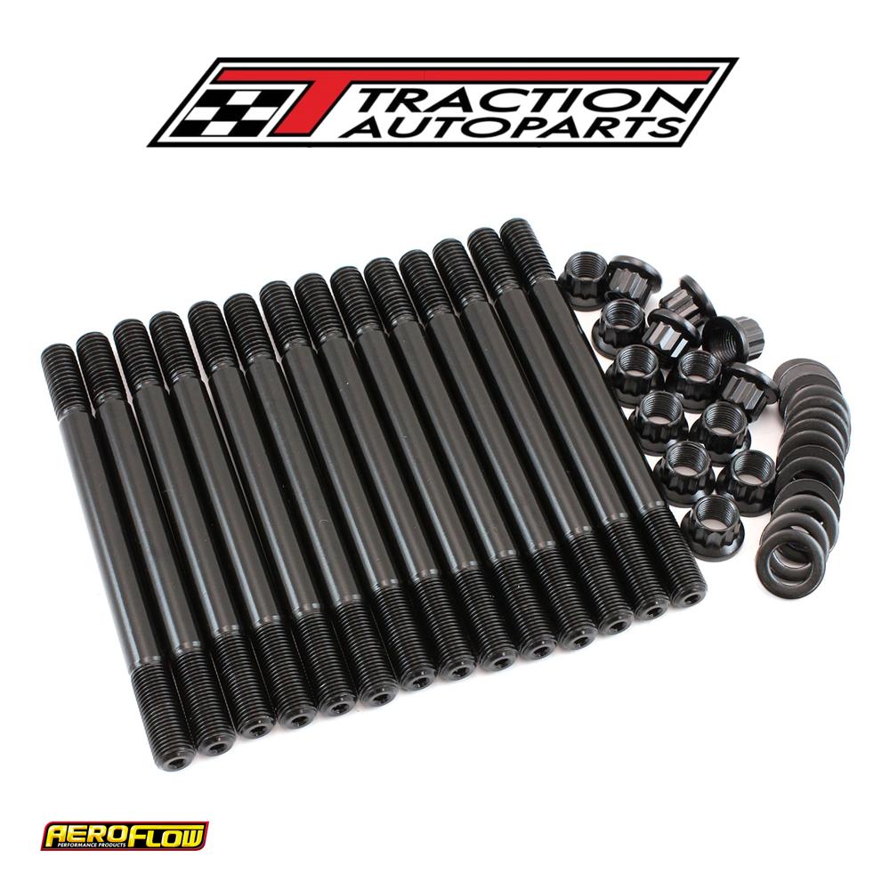 these head studs are manufactured from aircraft quality 8740 high tensile strength chromoly steel and cold-forged to ensure molecular integrity within the stud. Meaning these studs are rated up to 190,000 psi making them stronger than grade 8 and oem fasteners. All kits come complete with 12-point nuts and hardened washers for an even load distribution and accurate torque readings.