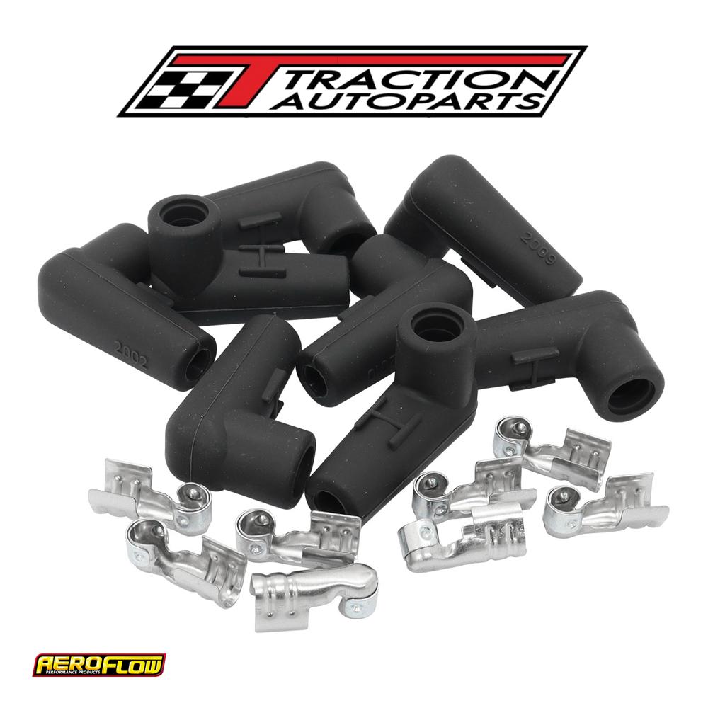 Low Profile 90 Deg Spark Plug 8 Boots & 8 Terminals Black