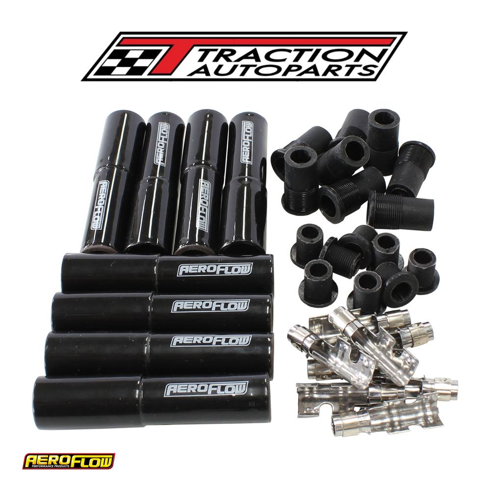 Aeroflow performance ceramic spark plug boots and terminals have been developed to address the problems associated with burnt spark plug boots. Whether you're running headers with close tolerances, a turbo manifold and dump pipe with very littleroom in the engine bay for heat shields or you're just over melting your spark plug boots from extreme heat. Theseblack ceramic wire boots are the answer! they can withstandtemperatures of up to 1090°c (2000°f). You can match these with our xpro ignition lead wire that is 8. 5mm spiral wound low resistance with high emi suppression which is sold separately in different lengths along with spark plug boots to completely custom make your new set of leads or just re-crimp your current lead sets to upgrade them.