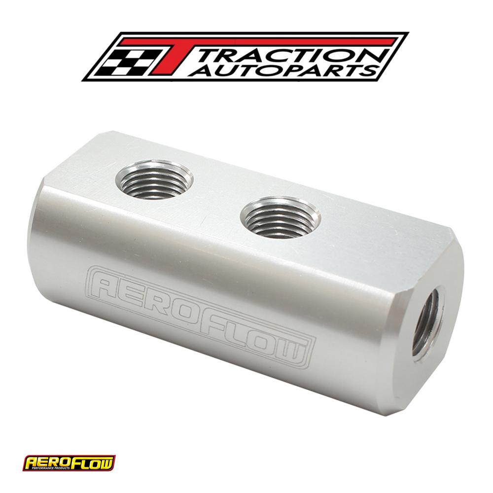 Aeroflow performance has designed these compact distribution blocks for universal applications. Such as a vacuum block distributionto plumb up additional vacuum ports for accessories like mapsensors, boost gauges, blow off valves, or hooking up individual throttle bodies. Coolant lines for header tanksor ls steam pipe lines and nitrous oxide lines. Availablewith 1 port in and 4 ports outand 1 port in and 6 ports out,these ports are all 1/8" npt.