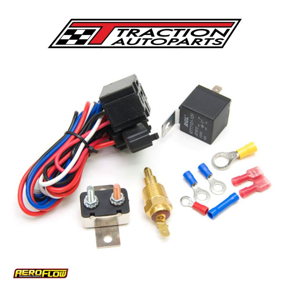 Aeroflow performance's single fan relay and wiring harness kit is essential with an electric fan setup. This universal kit will prevent voltage drops and amperage overloads which cause havoc with your electrical system.