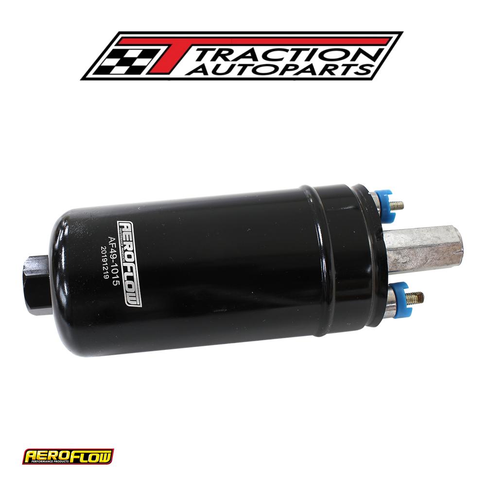 this Aeroflow performance fuel pump delivers outstanding Aeroflow performance and durability andis one of the most popular pumps for Aeroflow performance and racing applications. This fuelpump is almost identical to af49-1014 but features a smaller m14 x1. 5mm inlet. The pump is very versatile, allowing you to mount your pump externally as an in-line pump or internally as an in-tank pump. While producing 300lph (79gph) of fuel flow and operating at 72. 5psi, withthis pump you will be able to support 675hp. It features a check valve already screwed into the outlet, if you leave itin you will need to run a banjo fitting as the thread istapered. It is common for people to remove this check valve and screw an adaptor fitting straight in the outlet. If you do this you will need to put an aftermarket check valve in-line to keep fuel pressure in your lines.