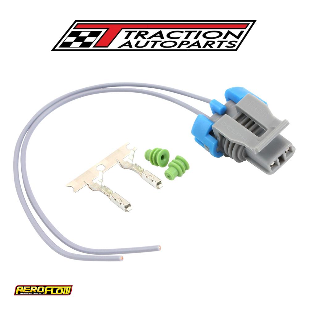 this Aeroflow performance 2pin multi-purpose automotive plug are used with a variety of different gm based sensors and electrical components. Available in both a grey colour version or black colourversion indicated by the plug colour itself. Each pigtail isa pre-terminated looms which allow easy installation on current wiring without the need to crimp. Perfect for those that are replacing worn damaged connectors or for those creating a new loom due to relocating coils. Note: extra terminal pins and seals are supplied for custom looms or those wanting to crimp their own wires.
