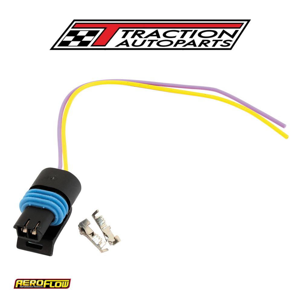 this Aeroflow performance 2pin multi-purpose automotive plug are used with a variety of different gm based sensors and electrical components. Available in both a grey colour version or black colourversion indicated by the plug colour itself. Each pigtail isa pre-terminated looms which allow easy installation on current wiring without the need to crimp. Perfect for those that are replacing worn damaged connectors or for those creating a new loom due to relocating coils. Note: extra terminal pins and seals are supplied for custom looms or those wanting to crimp their own wires.