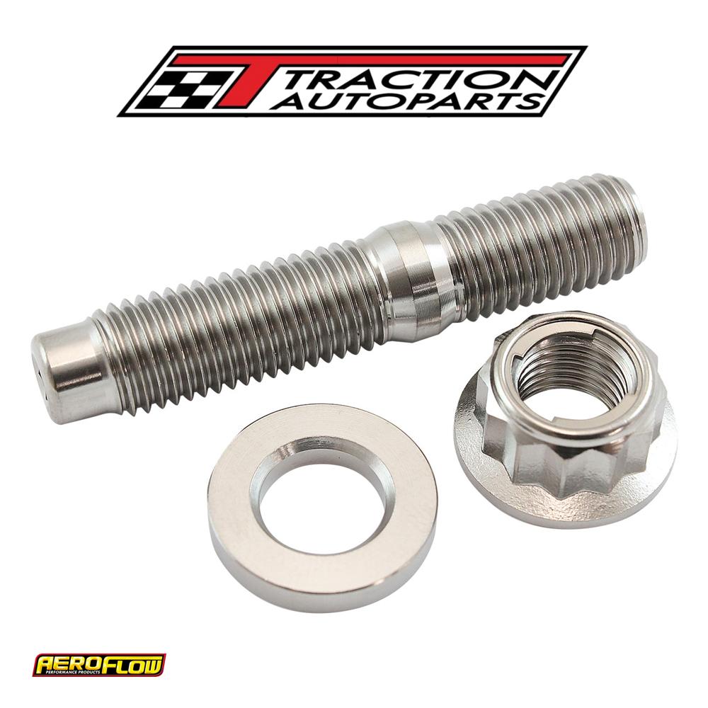 Aeroflow performance titanium studs are 45% lighter and stronger than your regular steel stud and nut combo you find at your local bolt shop. The high strength and super lightweight titanium 6al-4v grade (grade 5) studs are the perfect replacement for turbo manifolds, exhaust headers or intakes. The use of factory oem bolts and studs they can result in stripped or broken bolts and inadequate clamping force, resulting in leaks. Aeroflow Performance titanium stud and locking nut combo incorporates a hex key tip that allows them to be easily installed using an allen wrench. Titanium 6-point single hex locking nuts and washers are included. These all-metal locking nuts have no plastic inserts of any kind. They're effective under even the harshest conditions, extreme temperatures and works well under a high level of vibration. Note: locking nuts will wind on freely until they hit the metal inserts at the top of the nut, then a tool is required to tighten nut all the way down.