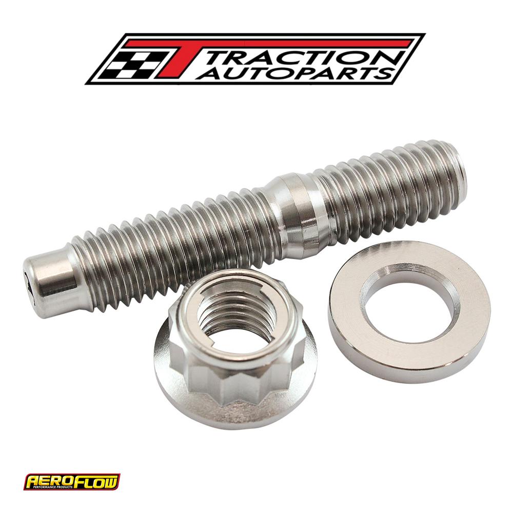 Aeroflow performance titanium studs are 45% lighter and stronger than your regular steel stud and nut combo you find at your local bolt shop. The high strength and super lightweight titanium 6al-4v grade (grade 5) studs are the perfect replacement for turbo manifolds, exhaust headers or intakes. The use of factory oem bolts and studs they can result in stripped or broken bolts and inadequate clamping force, resulting in leaks. Aeroflow Performance titanium stud and locking nut combo incorporates a hex key tip that allows them to be easily installed using an allen wrench. Titanium 6-point single hex locking nuts and washers are included. These all-metal locking nuts have no plastic inserts of any kind. They're effective under even the harshest conditions, extreme temperatures and works well under a high level of vibration. Note: locking nuts will wind on freely until they hit the metal inserts at the top of the nut, then a tool is required to tighten nut all the way down.