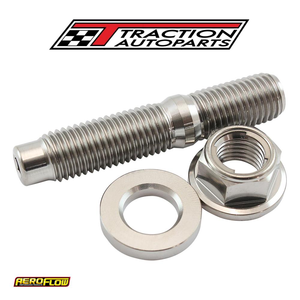 Aeroflow performance titanium studs are 45% lighter and stronger than your regular steel stud and nut combo you find at your local bolt shop. The high strength and super lightweight titanium 6al-4v grade (grade 5) studs are the perfect replacement for turbo manifolds, exhaust headers or intakes. The use of factory oem bolts and studs they can result in stripped or broken bolts and inadequate clamping force, resulting in leaks. Aeroflow Performance titanium stud and locking nut combo incorporates a hex key tip that allows them to be easily installed using an allen wrench. Titanium 6-point single hex locking nuts and washers are included. These all-metal locking nuts have no plastic inserts of any kind. They're effective under even the harshest conditions, extreme temperatures and works well under a high level of vibration. Note: locking nuts will wind on freely until they hit the metal inserts at the top of the nut, then a tool is required to tighten nut all the way down.