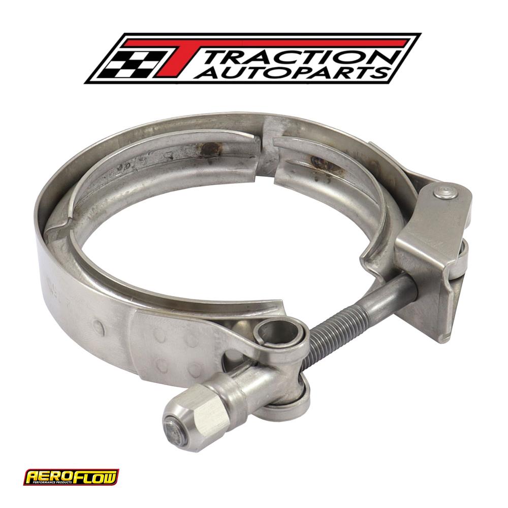 Aeroflow performance quick release v-band clamp makes it easy to install and remove exhaust systems and turbo parts. Great for racers and tuners, these clamps make it easy to remove parts to gain access to vital components easily as there are no hard-to-reach bolts or specialtools needed. Simply undo the clamp and you can remove the component easily.