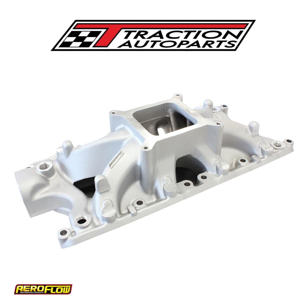 get the maximum power from your carburetted engine with this hi rise small block ford carburetted cast intake manifold. This single-plane intake manifold is designed tokeep your air and fuel distribution going into the engine at a steady and even flow for maximum Aeroflow performance and efficiency. The carburettor-mounting pad is designed to accept aftermarketsquare-bore carburettors with either manual or electric choke options available on today’s market. Specifically designed for 289,302 and 351 cubic inch small-block ford windsor engines operating from 3000 to7500 rpm range. In most cases,these manifolds accept late model water necks, air conditioning, alternator and h. E. I. Ignition systems.