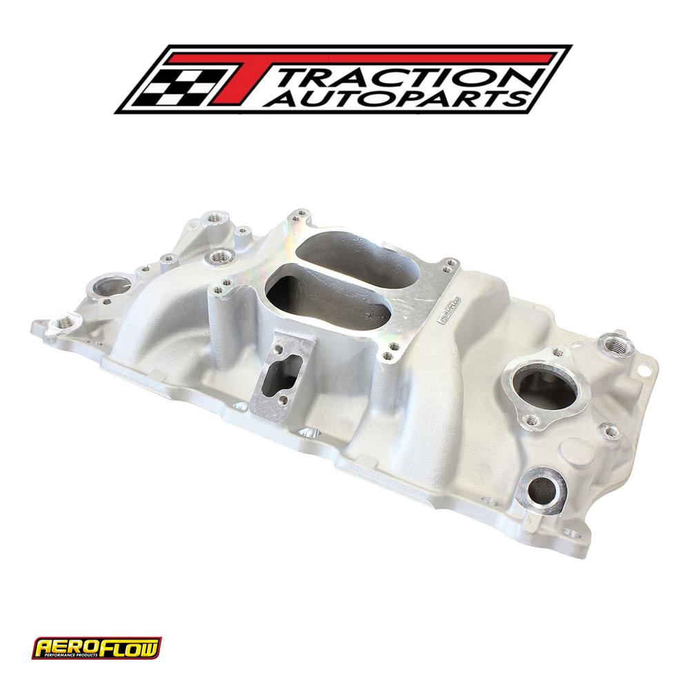 get the maximum power from your carburetted engine with this classic small block chevy carburetted cast intake manifold. This dual-plane intake manifold is designed to keep your air and fuel distribution going into the engine at a steady and even flow for maximum Aeroflow performance and efficiency. The carburettor-mounting pad is designed to accept aftermarket square-bore carburettors with either manual or electric choke options available on today’s market. Specifically designed for 262-400 cubic inch small-block chevy engines operating in the idle to 5500 rpm range. In most cases, these manifolds accept late model water necks, air conditioning, alternator and h. E. I. Ignition systems.