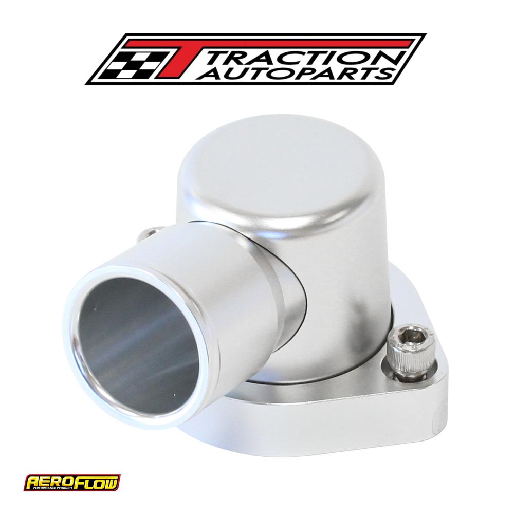 the Aeroflow performance billet thermostat housings area three-piece design that allows for correct positioningof the outlet to suit a large array for applications especially in conversions where small can be an issue. Machined from t6-6061 billet aluminium and allows for a full 360-degree swivel rotation for ease of installation. All Aeroflow performance thermostat housings feature an O-ring base flange, as opposed to using the factory paper style gasket, this ensured a superior leak free seal. Each thermostat housing outlet can be untreated exposing a female1-1/4”-20 thread to adapt a an fitting or a largerbarb fitting for custom applications. Available in several anodised finishes.