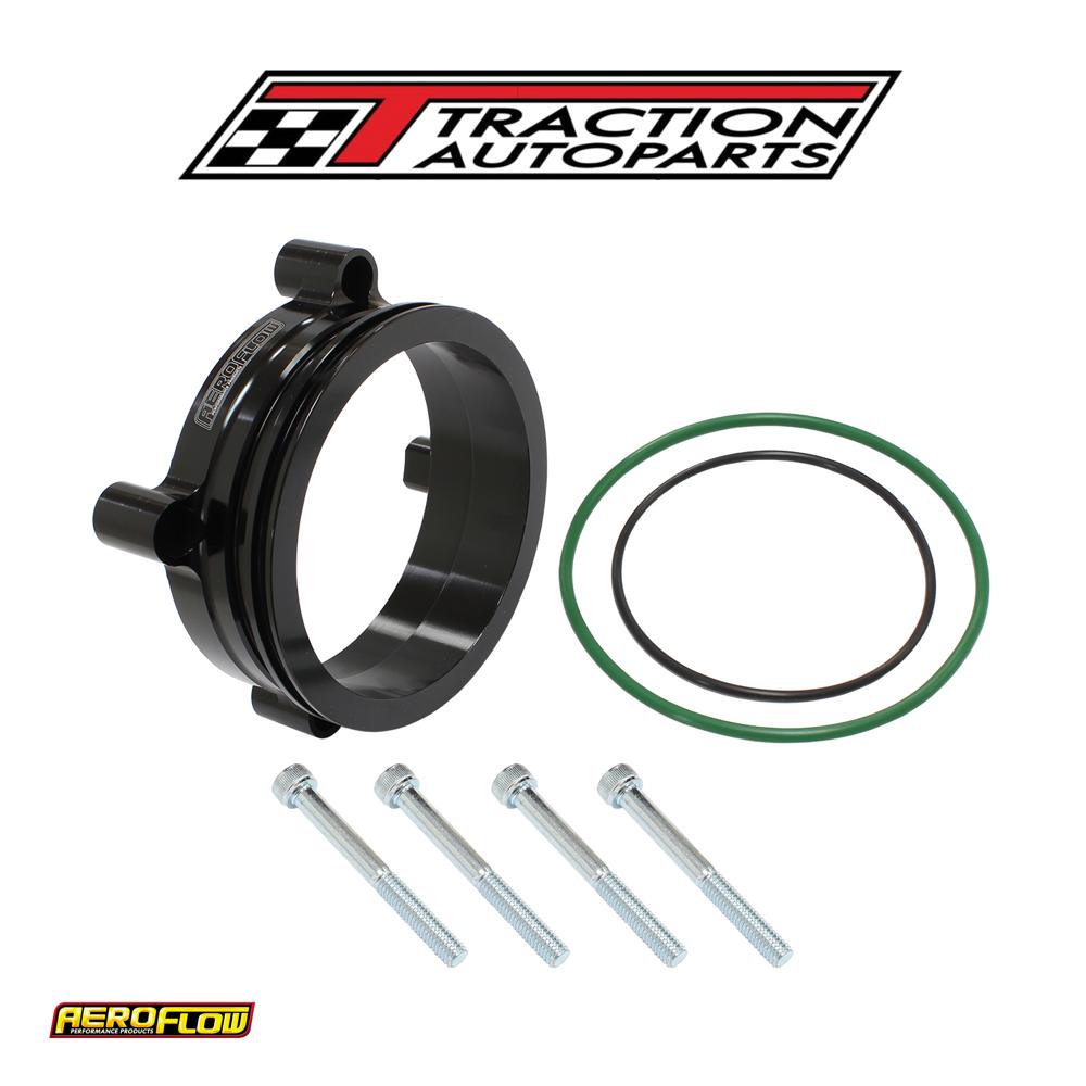 these handy adapters bolt to front of the popular bosch 74mm and 82mm electronic throttle body (af64-2135, af64-2136) and allows an intercooler clamp (af25-3000 and af25-3500 sold separately) to be used. The internal bore of the adapter has been designed to ensure a smooth transition to the throttle body for maximum flow. Featuring an O-ring on each side of the adapter to ensure a positive seal onto the throttle body and the intercooler clamp. Machined from billet 6061-t6 aluminium and anodized in a black or silver finish.