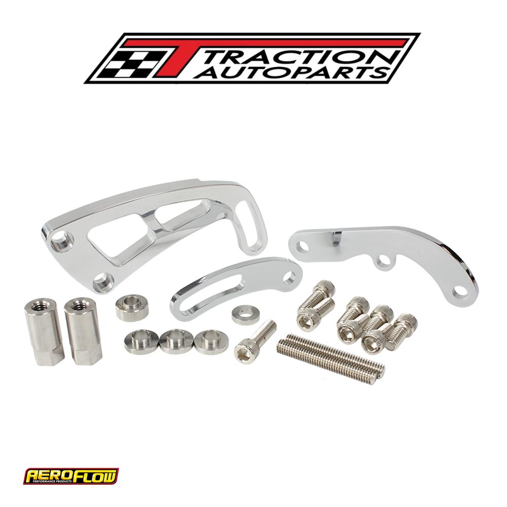 these power steering brackets are made from 6061 t6billet aluminium and are designed to suit small block chevy v8s with a mid-mounted power steering pump on the left hand side (australian passenger side) of the motor and the "long" water pump.