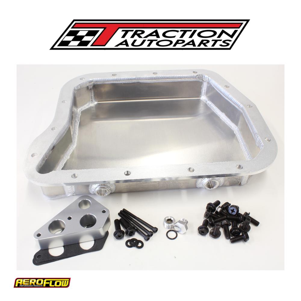 transmission pans use a one piece billet rail for precise fitment and strength. The deep fabricated aluminium design allows you to carry more oil to help reduce unwanted gearbox temperatures. Pans come with dual fittings, 1 x -6 orb and 1 x 3/8" npt for optional temperature gauge. All pans come with serrated flange bolts.