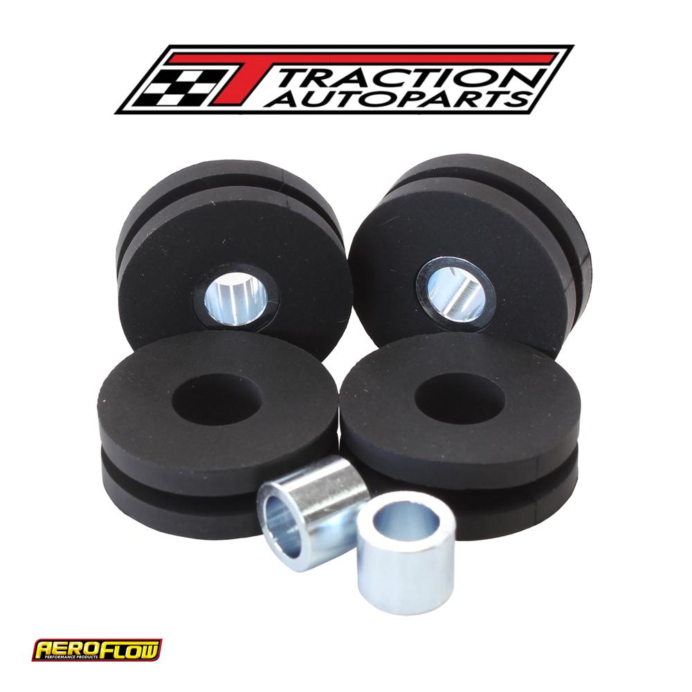 in many Aeroflow performance applications such as off-road,drag racing and street, strongvibration forces can be transmitted through the chassis to our oil cooler unit. To protect the oil cooler from damage due to excessive vibration, we recommend the use of these rubber vibration mounts. Designed specifically to fit into our competition oil coolers only. Sold in a pack of 4 with a 6. 5mm i. D.
