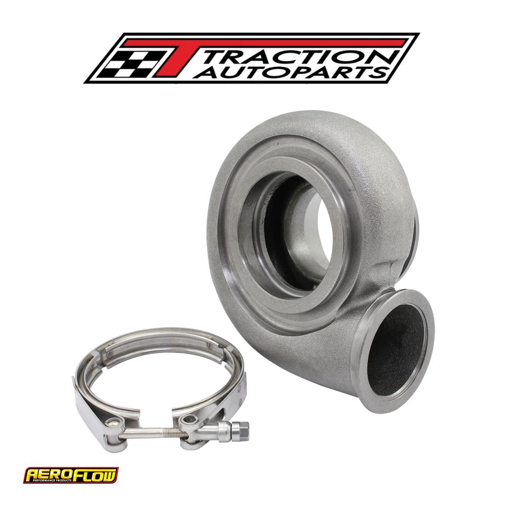 Aeroflow performance offersa variety of replacement turbine rear housings for their entire range for boostedseries turbochargers. You can choose to option for a smalleror larger a/r ratio. This willallow you to fine tune depending on your application for engine configuration and driving conditions. Available in many different turbine inlet and outlet flanges to fit most exhaust manifolds such as t25/t28, t3, t4,t6 and v-band and exhaust downpipes such as 5 bolt and v-band. Turbine housings can be replaced on most turbos easily via mounting bolts or v-bands and a few minutes of time. They can be clocked 360 degrees to just about any position needed.