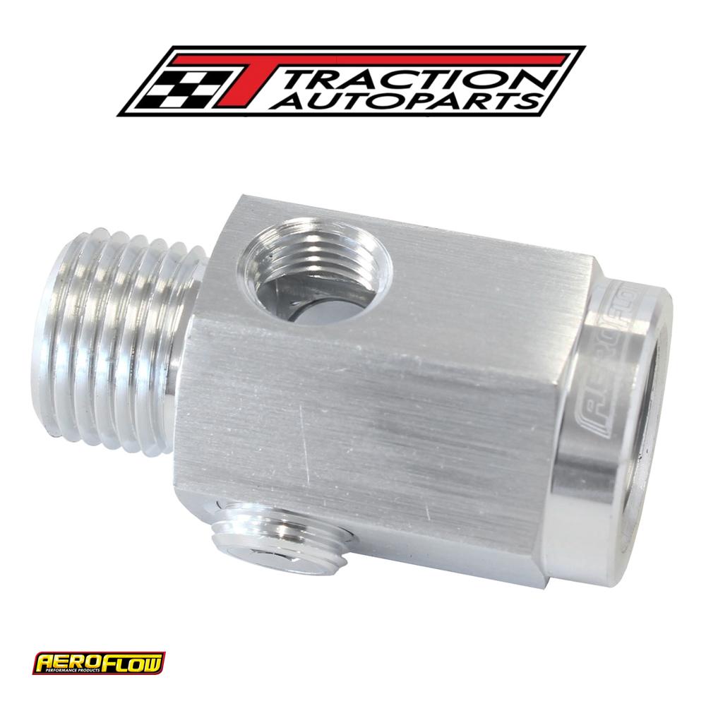 this Aeroflow performance metric extension adapter with the option of three 1/8”npt ports are designed for adapting oil pressure and temperature gauge sensors. It includes two 1/8” npt plugs to block of unused ports. Available in three common metric sizes m12 x 1. 5mm, m14 x 1. 5mm and m16 x 1. 5mm. This adapter is made from 6061-t6 aerospace grade aluminium and available in a blue, black or silver anodisedfinish.