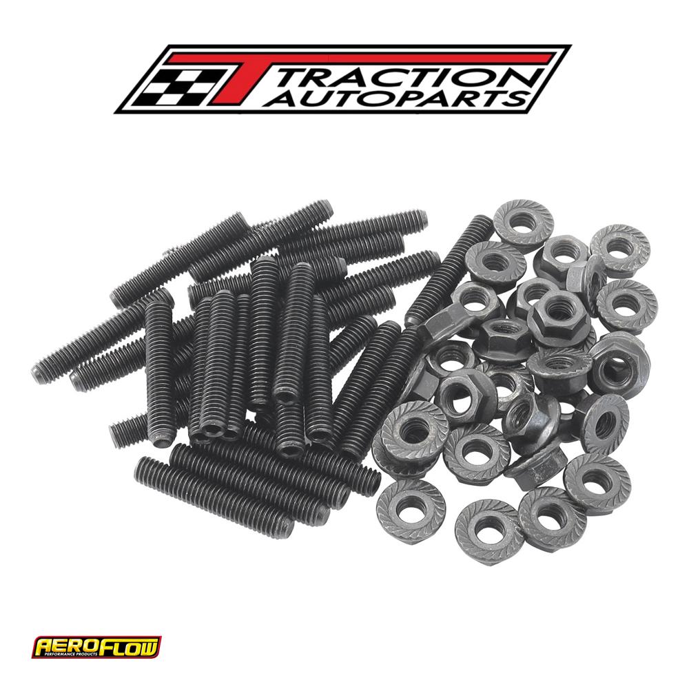 the Aeroflow performance oil pan stud kit is designed for use with our oil pan for the nissan rb20, rb25 and rb30 rear wheel drive models only. Using these studs makes installing your oil pan a breeze without the hassle of aligning bolts. The serrated faced nuts provide extra grip on the oil pan rail which will prolong the life of the gasket and prevent oil leaks down the line. Studs are made of heat-treated grade 8 steel with zinc plated silver and the nuts are cadmium and zinc plated. This set includes thirty m6 x 1. 00mm (35mm long) studs and matching nuts.