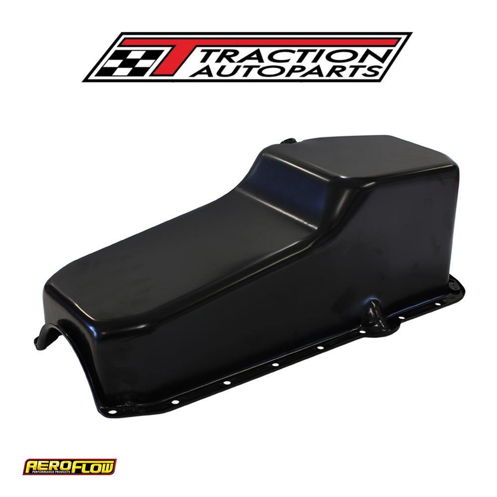 Steel Stock Oil Pan Sbc Black Rh/side Dipstick Rear Sump