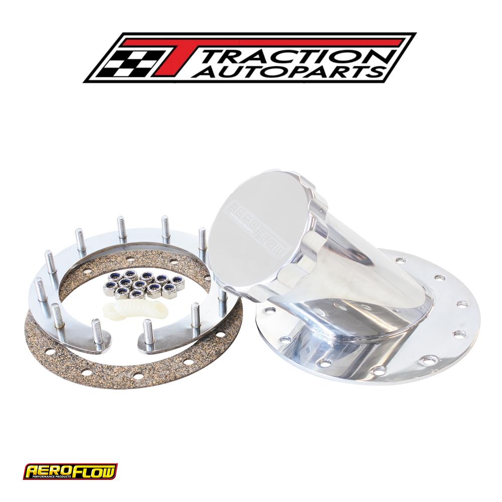 this 45° filler neck suits all Aeroflow performancefuel cells. It has a 63. 5mm (2. 5") neck diameter and suitsa 120mm (4-23/32") bolt circlewith a 102mm (4") cut out. Screw ring, washers, gaskets and nuts included. Total height is 120mm (4-23/32").
