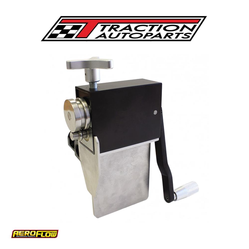 the Aeroflow performance pipe beading tool is a staple for any car fabricators. Especially when it comes to making custom intercooler piping and wanting to keep the silicone hose from blowing off. The rollers are crafted from heat treated steel and 6061 aluminium components. This vice-mounted tool will form a perfect bead on the end of aluminium or copper tubing. Simply insert the end of the tubing between the dies and start cranking the turning handle. Give the wheel a quarter-turn with each full rotation of the tubing to gradually tighten the dies against the tubing.