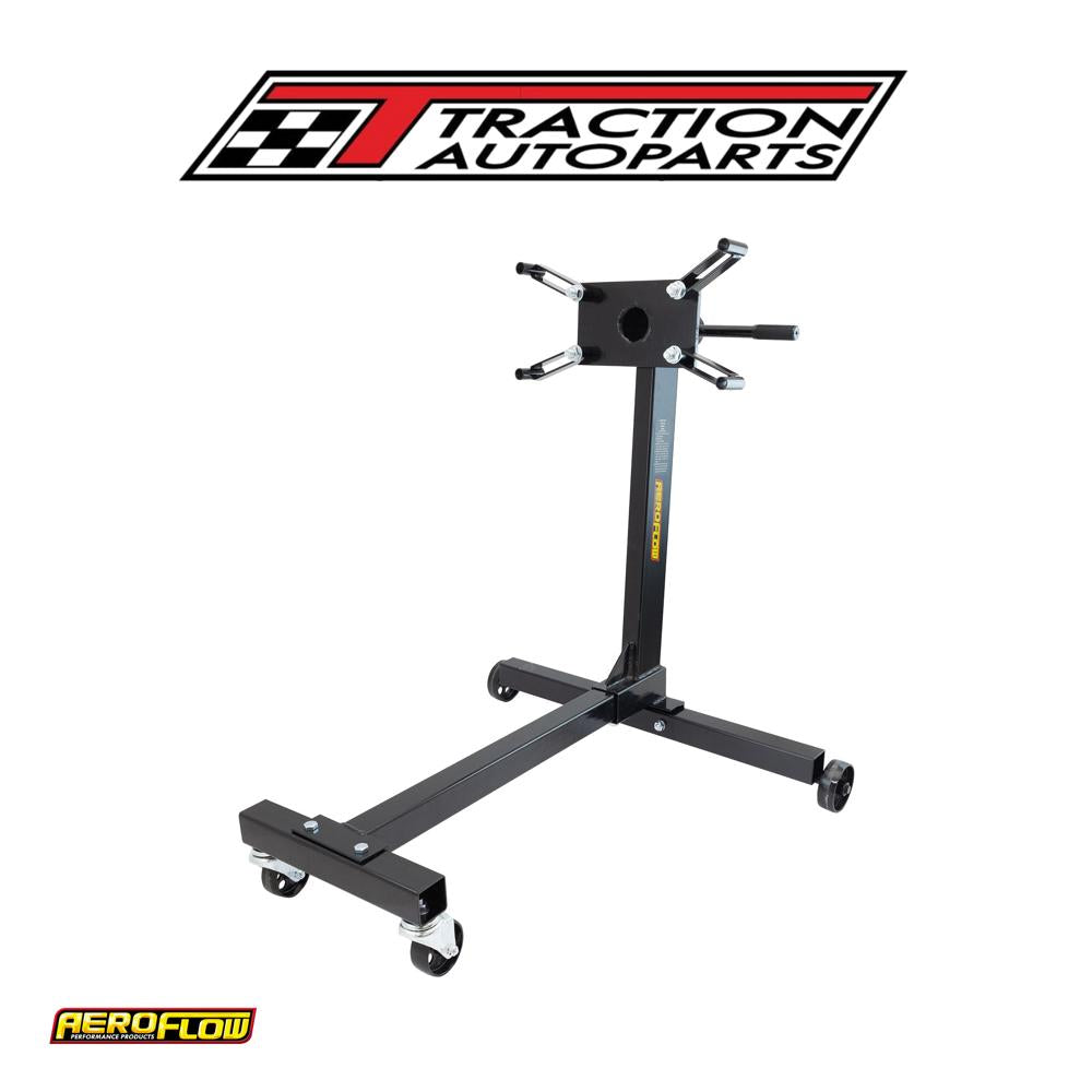 any engine mechanic whether it’s at home or at the workshop will know the dilemmas associated with working on an engine when it has been removed from its mounted position in the car. This is where the Aeroflow performance range of engine stands comes into its own. These engine stands are the key to keeping your engine at working level so you don't fatigue while putting the hours in to your pride and joy. All engine stands feature a 360-degree rotational mounting plate. Allowing the engine to be rotated upside down without compromising the balance of the stand with a locking pin that prevents the motor from rotating further while working on it. This mounting plate has adjustable universal mounting points allowing bolts to be put through and mounted to the rear of the engine making it suitable for most engines. This all-steel construction engine stand also sits on castor wheels allowing easy movement and is powered coated black for protection.