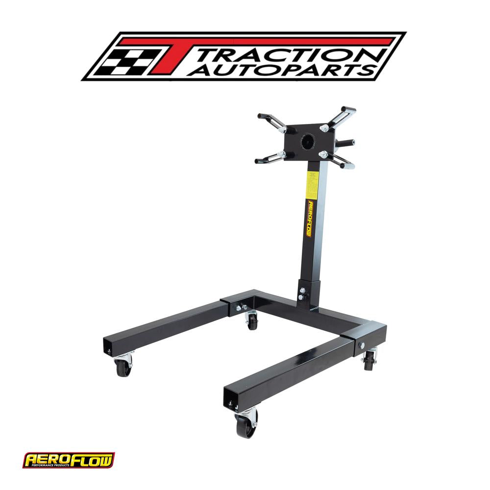 any engine mechanic whether it’s at home or at the workshop will know the dilemmas associated with working on an engine when it has been removed from its mounted position in the car. This is where the Aeroflow performance range of engine stands comes into its own. These engine stands are the key to keeping your engine at working level so you don't fatigue while putting the hours in to your pride and joy. All engine stands feature a 360-degree rotational mounting plate. Allowing the engine to be rotated upside down without compromising the balance of the stand with a locking pin that prevents the motor from rotating further while working on it. This mounting plate has adjustable universal mounting points allowing bolts to be put through and mounted to the rear of the engine making it suitable for most engines. This all-steel construction engine stand also sits on castor wheels allowing easy movement and is powered coated black for protection.