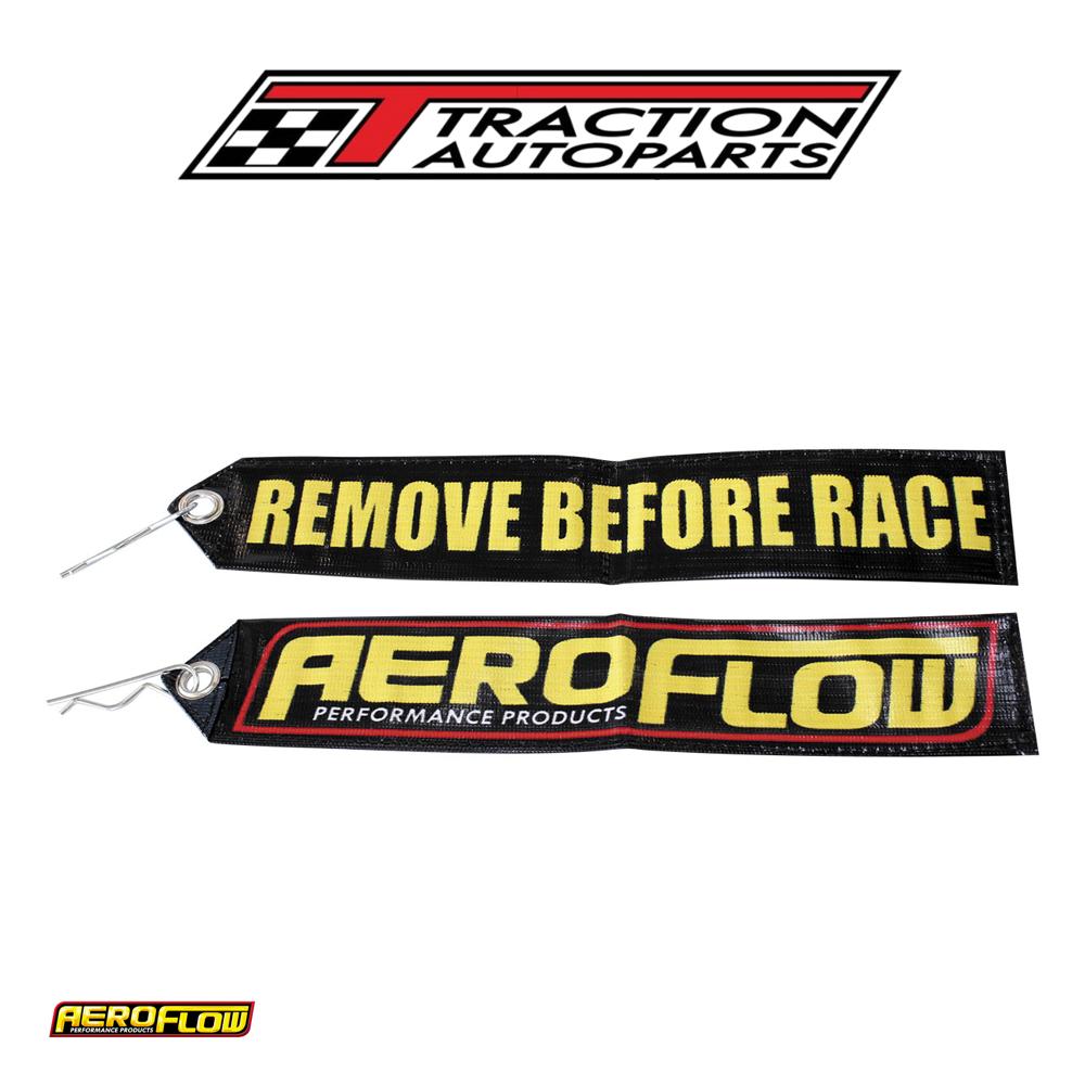 these Aeroflow performance parachute safety flags are designed to mount on your parachute after it's been re-packed. They feature in yellow writing the phrase, "remove before race". These parachute flags keep your chute safely packed and able to deploy while you're working in the pits or waiting in the staging lines for your next pass down the quarter-mile.