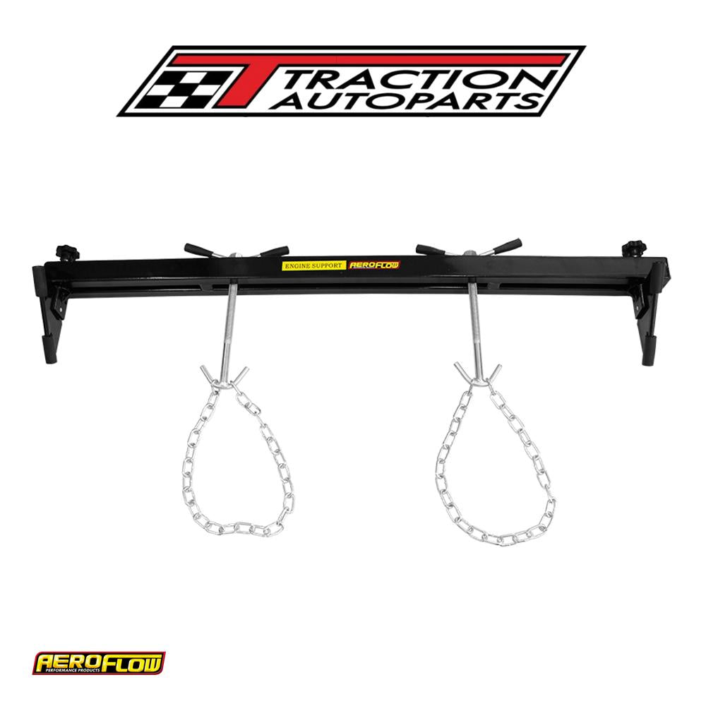 the Aeroflow performance engine support bar allows you to hold your engine and transmission in place while you remove your sub-frame or engine mounts for repairs without removing the engine from the vehicle. It features dual hook assemblies for increased load balance when working on heavy engines or when removing the transmission or transaxle. This engine support bar comes with adjustable extension arms, adjustable height set screws and neoprene support pads which prevents slippage as well as damage to paint. Each engine support bar is adjustable to accommodate most vehicles on the market and a each is supplied short length of chain.