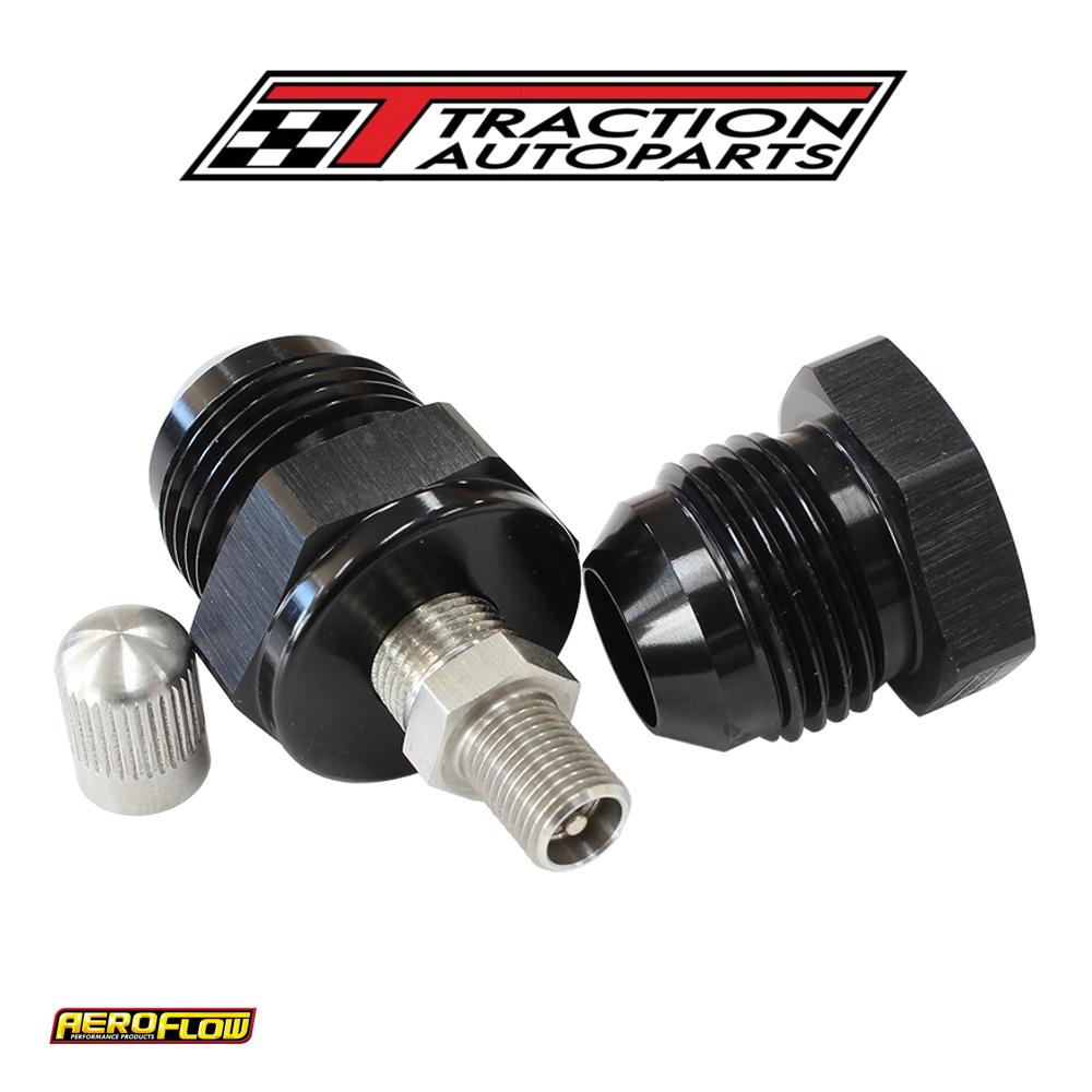 these pressure test kits from Aeroflow performance is just what you need to ensure the job is done right before installing it onto your application. After assembling your line fit the block off to one end of your line and test valve on the other end then use an air compressor to pressurize the line to the desired test pressure. Spray the line with soapy water or submerse in a bucket of water to check for leaks while under pressure. The valve is a standard schrader valve which allows a tyre pressure gauge to be used. Unlike some other, more costly and complex solutions for testing braided lines, these pressure testers are small and versatile and allow the user to test all lines both on and off the vehicle. Available in all AN sizes from -3an all the way to -20an.